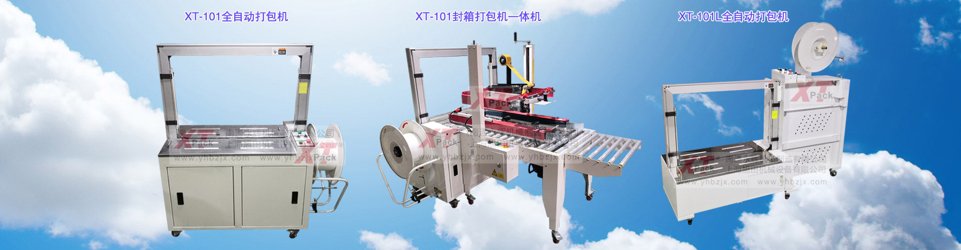 主要产品有:全自动打包机、半自动打包机、手持打包机、全自动封箱机、左右驱动封箱机、电商专用封箱机、折盖封箱机、封箱打包一体机,及各类配套机械、包装材料等。